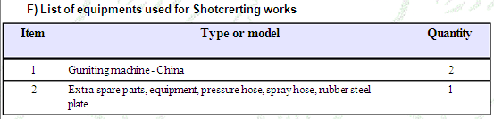 List of equipments